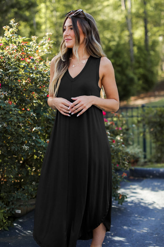 Sexy Women Long Sleeveless Slim with Back Split Dress